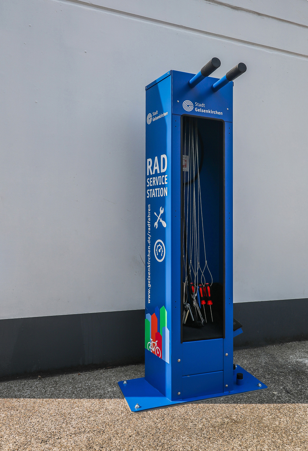 The service stations are an essential part of the ‘Radverkehr 2019/20’ programme, with which the city of Gelsenkirchen wants to permanently promote cycling and make it more attractive. As part of this plan, Gelsenkirchen is investing in bike-friendly infrastructure and supporting special bike tours in and around Gelsenkirchen.